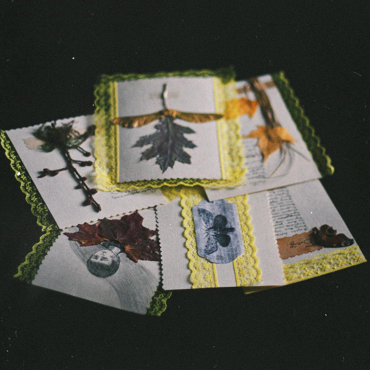 Limited edition - all handmade postcards are decorated with pieces of dead nature.